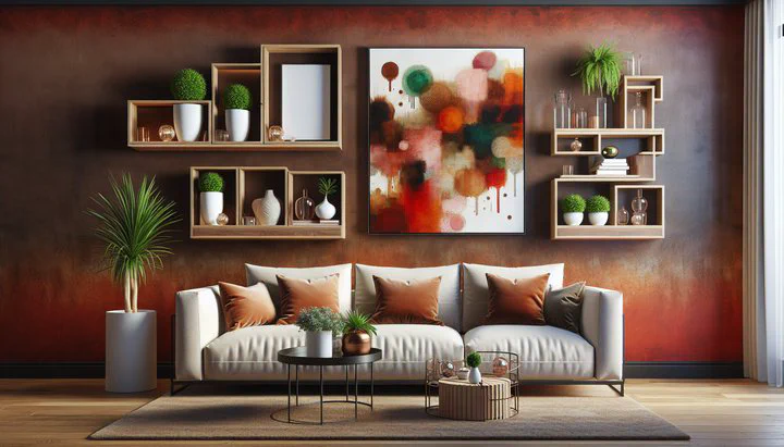 Think about the pros and cons of each option. Paintings are perfect for a bold statement, while shelves provide versatility and storage. You might even combine both by placing a painting above a shelf for a layered, dynamic look. Whatever you choose, ensure it reflects your taste and fits the mood you want to create in your living room.